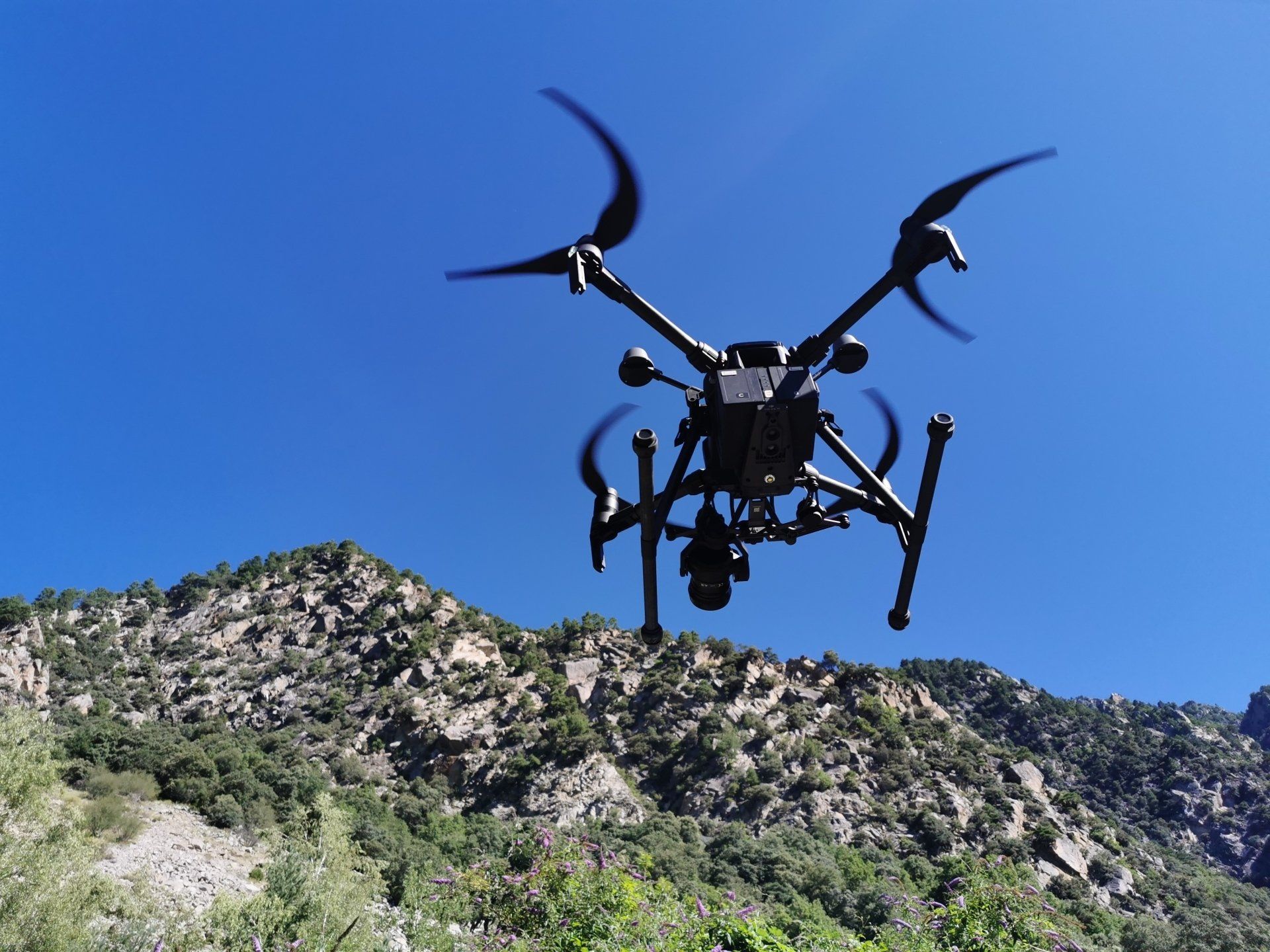 Fotogrametria amb dron professional de darrera generació, DJI Matrice 210 RTK V2 equipat amb sistema RTK (Real Time Kinematics), que permet obtenir una precisió en el posicionament del dron de 3-4 cm (respecte als 4-5 metres d’un dron convencional), per tal de detectar despreniments ocorreguts en una zona, o petites deformacions del terreny possibles precursores de despreniments futurs.
